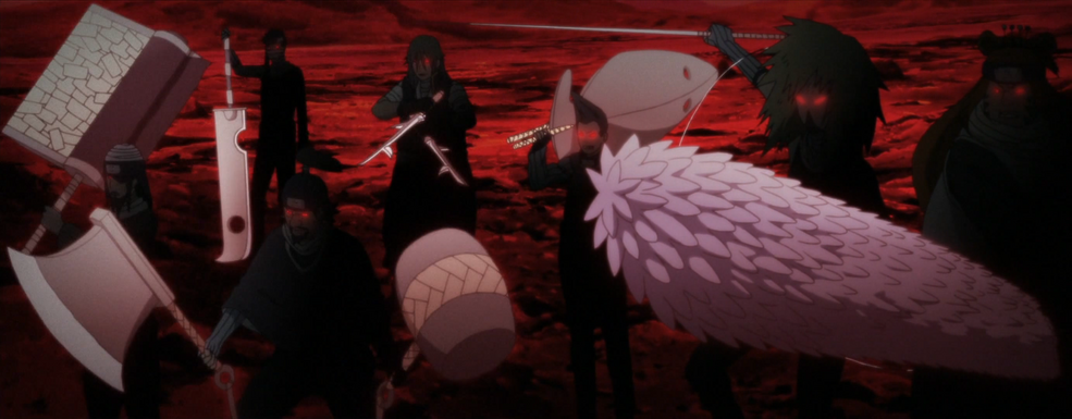 Kubikiribōchō (首斬り包丁; literalmente significa: "Faca de Talhar Decapitadora"): uma espada gigante com a aparência de uma faca de açougueiro, o portador pode usar o semi-círculo sobre a lâmina para um oponente — daí o nome. A espada possui a habilidade de se regenerar usando o ferro absorvido pelo sangue daqueles que ela corta. Ela também é chamada de "Espada Separadora" (断刀, Dantō).